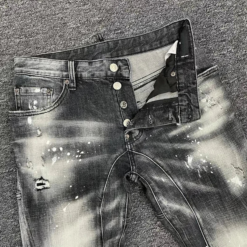 Calças Jeans Masculinas CheiHarper DSQ T156 – Bordado de Letras e Design Quadrático